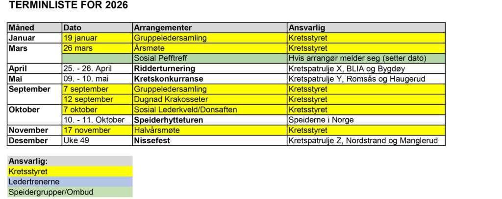 Terminliste 2026 – utskriftsversjon!